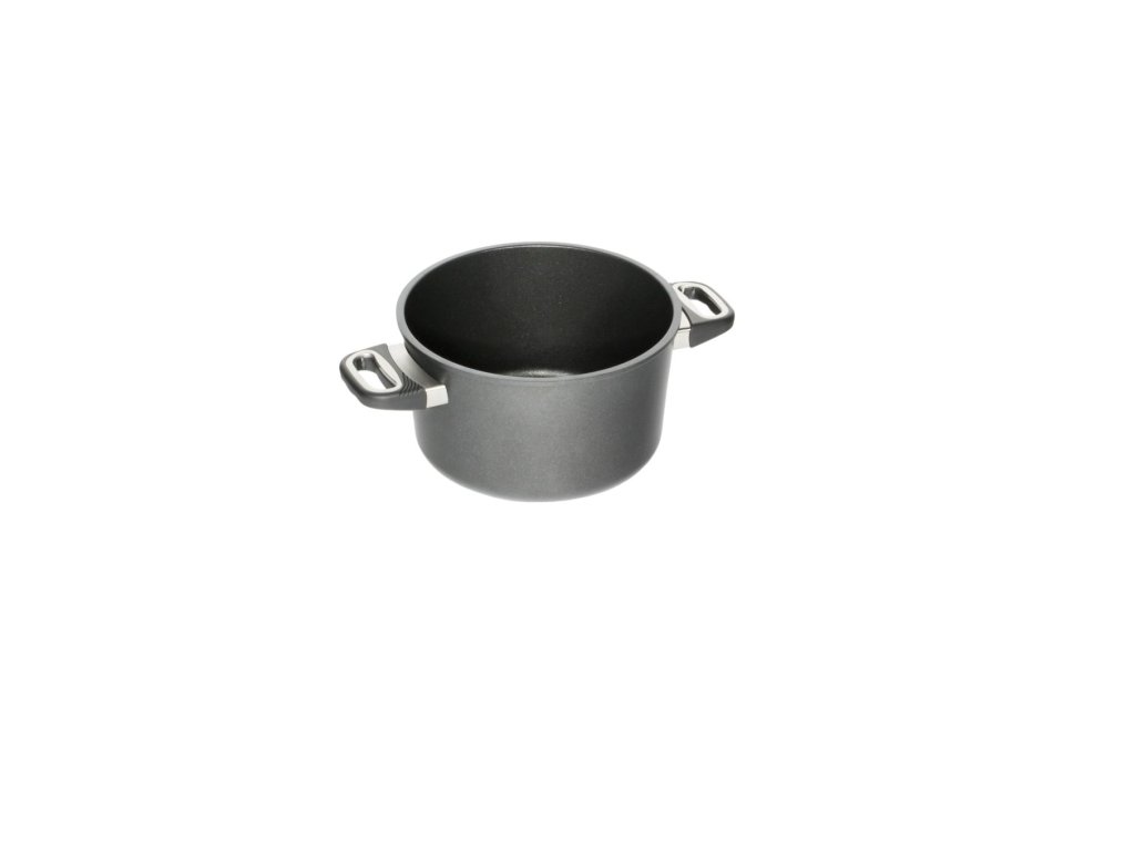 Všechny hrnce AMT mají robustní dno z recyklovaného hliníku, které zaručuje rychlou distribuci tepla. Nádobí se rychle a rovnoměrně zahřívá a snižuje se tak spotřeba energie. Díky speciální nepřilnavé povrchové úpravě Lotan® s keramickými částicemi, nemusíte při vaření používat žádný tuk a jídlo se vám nikdy nepřipálí. Antikorozní vrstva zajišťuje ochranu proti agresivním čisticím prostředkům, ovocným kyselinám a kyselině octové. Další vrstva obohacená o minerální částice zabezpečuje dlouhodobou odolnost proti opotřebení.