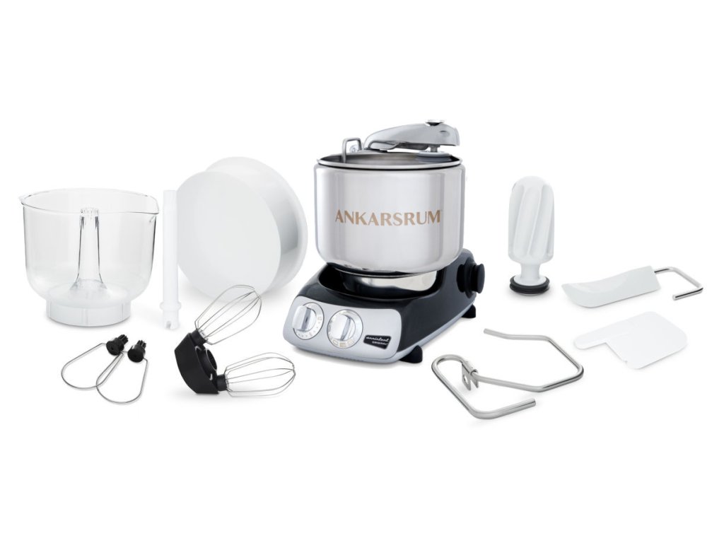 Každé standardní balení multifunkčního robotu Ankarsrum Assistent Original obsahuje příslušenství, které uživateli usnadní vaření a přípravu pokrmů a poskytne neocenitelnou pomoc při pečení všeho od bábovek až po chleba. Jedná se o nejnovější model klasického pomocníka Ankarsrum s několika novými chytrými funkcemi a vylepšeními.