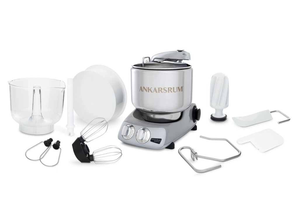 Každé standardní balení multifunkčního robotu Ankarsrum Assistent Original obsahuje příslušenství, které uživateli usnadní vaření a přípravu pokrmů a poskytne neocenitelnou pomoc při pečení všeho od bábovek až po chleba. Jedná se o nejnovější model klasického pomocníka Ankarsrum s několika novými chytrými funkcemi a vylepšeními.
