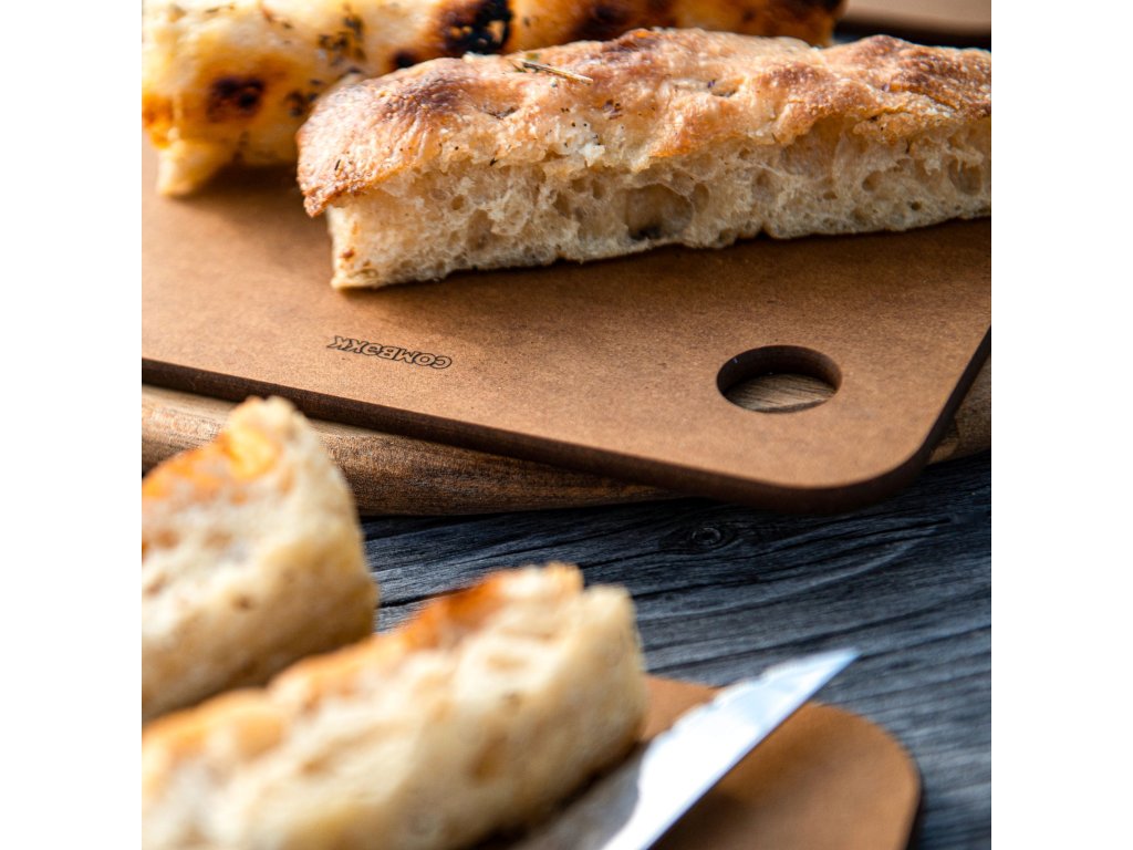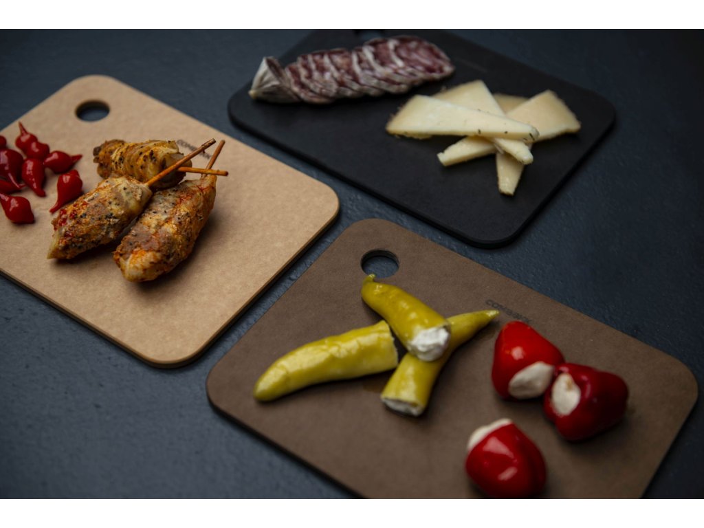 Krájecí prkénka COMBEKK jsou vyrobeny ze 100% recyklovaného papíru. Slisováním vzniká pevný materiál, který můžete znát pod názvem "Richlite". Superpevná, odolná a hladká krájecí prkénka jsou šetrná i k vašim nožům. Snadno se čistí a lze je mýt v myčce nádobí. Otvor v levém horním rohu usnadňuje zvedání krájecího prkénka z rovných ploch a můžete ho použít k servírování menších pokrmů, jako jsou dorty, koláče nebo různé občerstvení.
