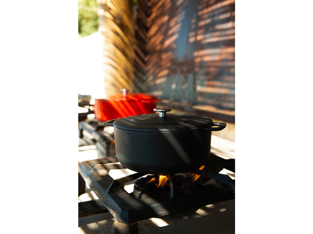 Smaltovaná litinová holandská trouba je ideální pro pomalé vaření, dušení, pečení a mnoho dalších způsobů vaření. Věděli jste, že tento hrnec byl vynalezen v 17. století v Holandsku? Je ideální například na pečení domácího chleba. Tento 100% recyklovaný litinový hrnec na vaření je opatřen silným smaltovaným povrchem a na první pohled vás zaujme svým krásným funkčním designem. Hrnec je vyroben ze 100% litiny, takže by vás mohla překvapit jeho hmotnost více jak 5kg. Při správném zacházení a péči vám vydrží desítky let. Hlavně ho neupusťte na zem!