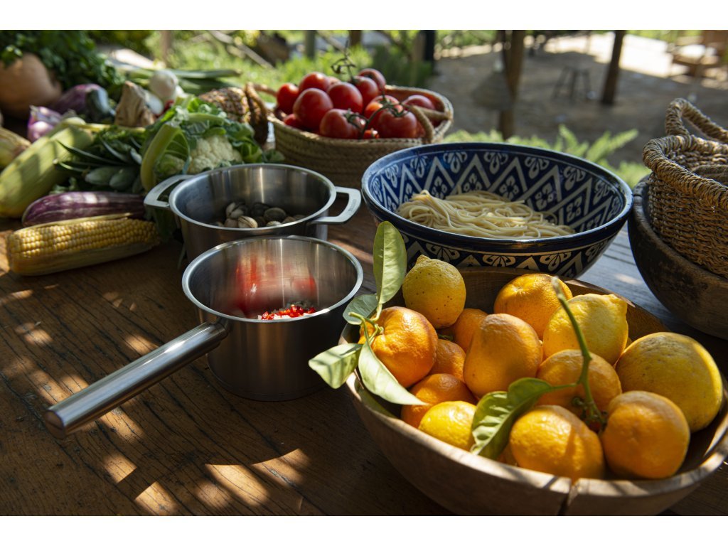 Hrnec na vaření prémiové kvality vyrobený ze 100% recyklované nerezové oceli s průměrem 18 cm. Ideální pro každodenní používání v kuchyni. Vhodný pro všechny typy varných desek, včetně indukce a pečení v troubě. Tento hrnec je nejen krásný, ale díky silné 4,5 mm oceli také velmi odolný (dno o tloušťce 6 mm).