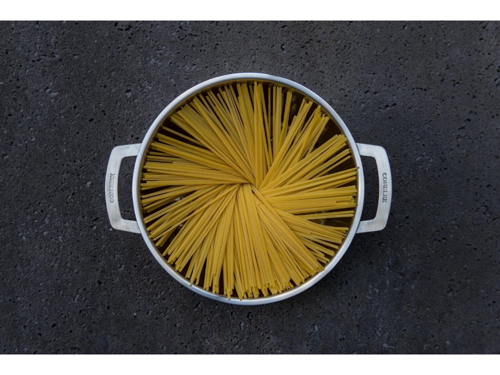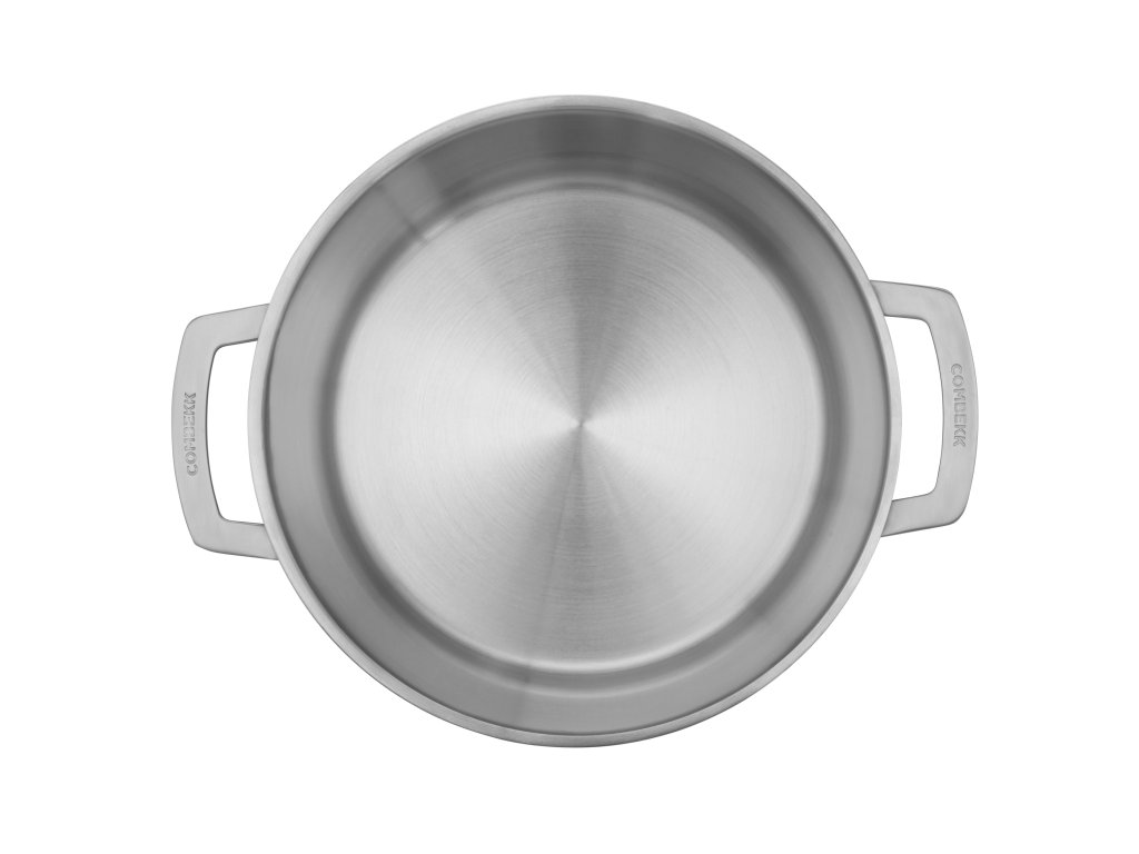 Hrnec na vaření prémiové kvality vyrobený ze 100% recyklované nerezové oceli s průměrem 24 cm a výškou 18 cm. Ideální pro vaření většího množství polévky, těstovin nebo zeleniny. Vhodný pro všechny typy varných desek, včetně indukce a pečení v troubě. Tento hrnec je nejen krásný, ale díky silné 4,5 mm oceli také velmi odolný (dno o tloušťce 6 mm).