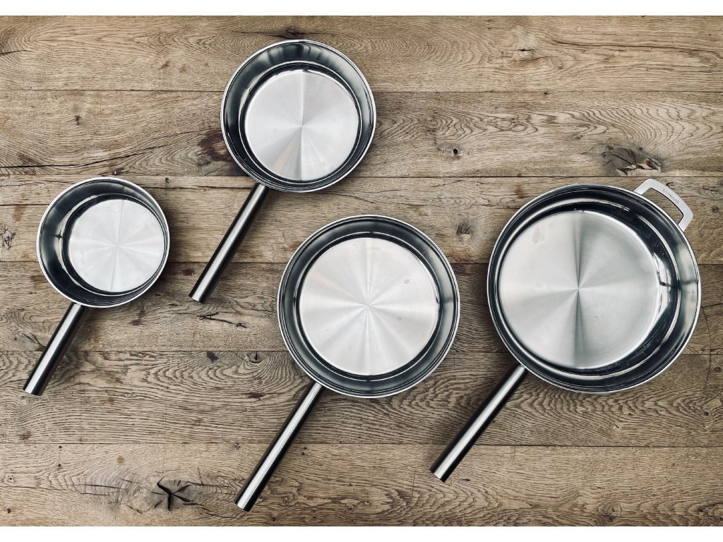 100% recyklované pánve z prvotřídní nerezové oceli. Vytvořeno nejen pro profesionální kuchaře, ale také pro všechny nadšené domácí šéfkuchaře. Díky 6 mm silnému sendvičovému dnu je zajištěno dokonalé rozložení tepla. Hledáte ideální pánev na steaky? Právě jste ji našli, to je ta pravá. Vhodná pro všechny typy varných desek, včetně indukce a pečení v troubě. Pánev COMBEKK je vyrobena z nejkvalitnější recyklované nerezové oceli a můžete ji použít na smažení masa, zeleniny, vajíček a mnoho dalšího. Pánev je vytvořena pro profesionální kuchaře, ale uvítají ji i všichni domácí kuchaři. Pánev vyrobená z recyklované nerezové oceli má stříbrnou barvu v lesku a je dodávány ve čtyřech různých velikostech: 20 - 24 - 28 - 32 cm. Rukojeť pánve je dutá, nezahřívá se tedy jako klasická a při vaření nemusíte používat kuchyňské rukavice. Díky masivní nerezové oceli je tato pánev také velmi odolná.