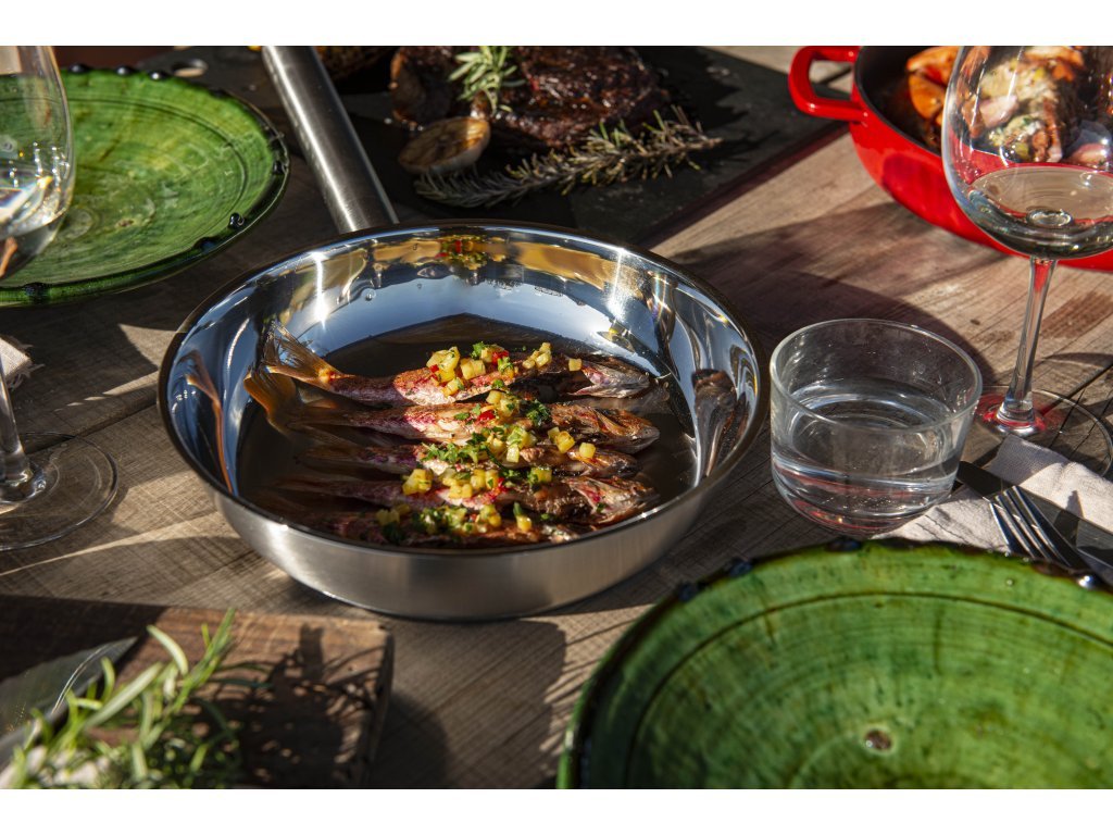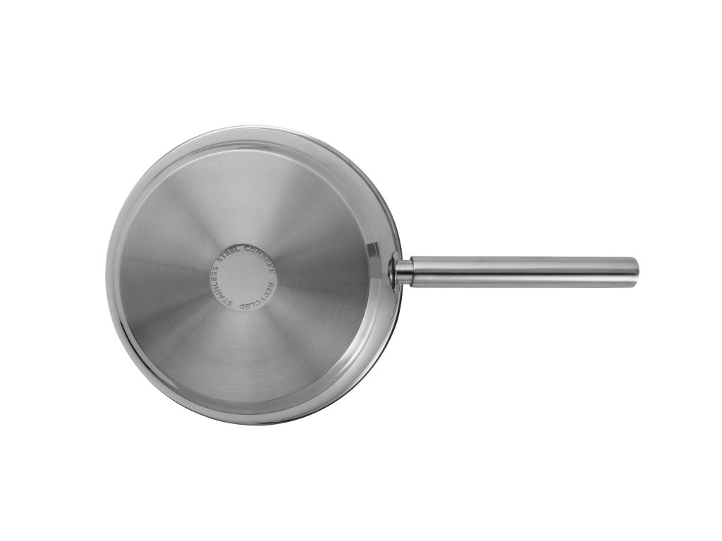 100% recyklované pánve z prvotřídní nerezové oceli. Vytvořeno nejen pro profesionální kuchaře, ale také pro všechny nadšené domácí šéfkuchaře. Díky 6 mm silnému sendvičovému dnu je zajištěno dokonalé rozložení tepla. Hledáte ideální pánev na steaky? Právě jste ji našli, to je ta pravá. Vhodná pro všechny typy varných desek, včetně indukce a pečení v troubě. Pánev COMBEKK je vyrobena z nejkvalitnější recyklované nerezové oceli a můžete ji použít na smažení masa, zeleniny, vajíček a mnoho dalšího. Pánev je vytvořena pro profesionální kuchaře, ale uvítají ji i všichni domácí kuchaři. Pánev vyrobená z recyklované nerezové oceli má stříbrnou barvu v lesku a je dodávány ve čtyřech různých velikostech: 20 - 24 - 28 - 32 cm. Rukojeť pánve je dutá, nezahřívá se tedy jako klasická a při vaření nemusíte používat kuchyňské rukavice. Díky masivní nerezové oceli je tato pánev také velmi odolná.