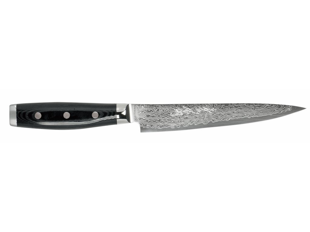 Yaxell GOU filetovací nůž s dlouhým, tenkým a úzkým ostřím je velmi vhodný pro řezání velkých kusů šunky, rybího filé, salámů a dalších potravin. Je schopen vytvořit jídlu delikátní vzhled tím, že dokáže krájet mimořádně tenké plátky. Úzká čepel krájí bez trhání nebo pilování, a to bez ohledu na to, zda-li pracujete se syrovým nebo již hotovým masem.