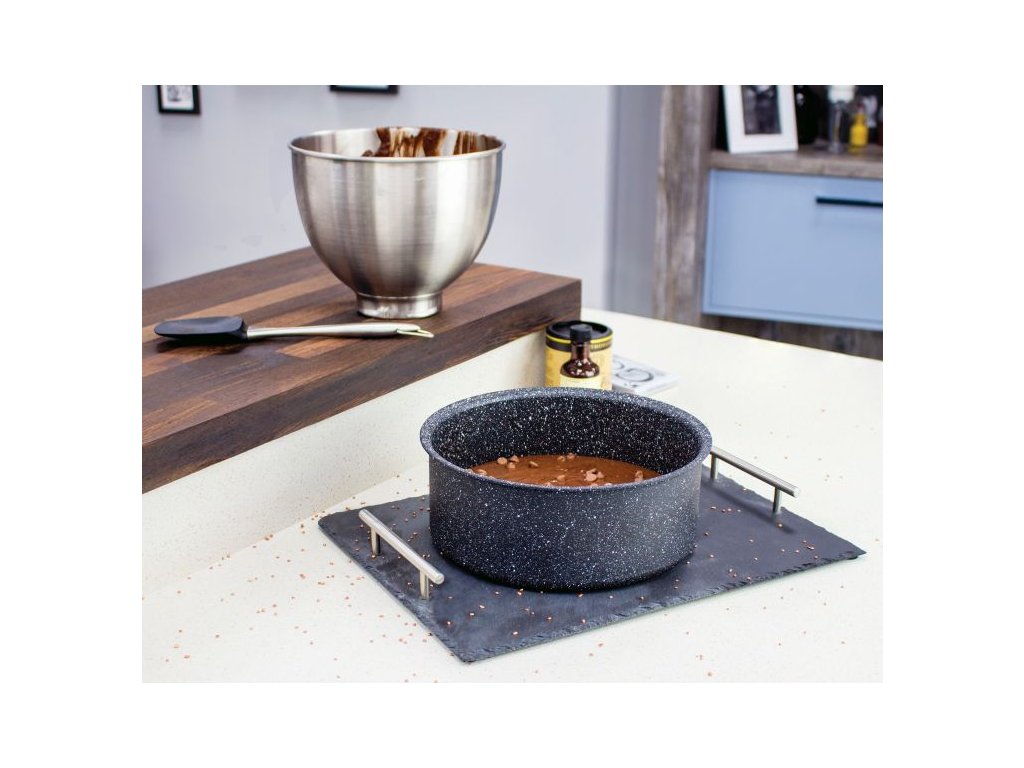 Kulatá forma na pečení je vyrobena z vysoce odolného tvrzeného hliníku a vyniká jak nepřilnavým povrchem, tak vysokou odolností proti poškrábání. Navíc je k dostání ve dvou praktických velikostech - 20 a 23 cm.