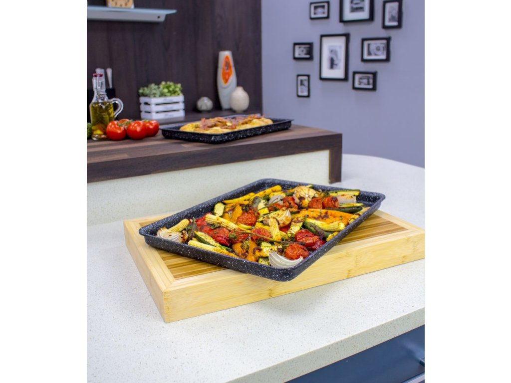 Plech na pečení je vyroben z vysoce odolného tvrzeného hliníku a vyniká jak nepřilnavým povrchem, tak vysokou odolností proti poškrábání. Navíc je dostupný ve dvou praktických velikostech - 31 a 37 cm.