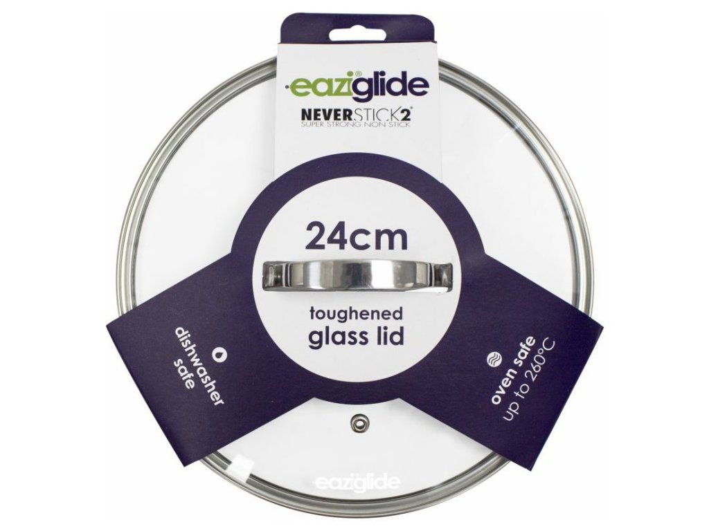 Skleněná poklice Eaziglide Neverstick2 je určena pro veškeré nádobí Eaziglide o průměru 24 cm. Poklice je vyrobena z odolného tvrzeného skla a nerezové oceli. Poklice je ideálním pomocníkem během napařování, pečení v troubě, coby ochrana před prskáním nebo při dušení masa.