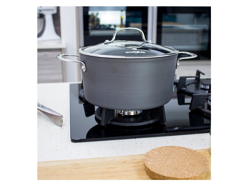 Kolekce Neverstick3 je pro intenzivnější odolnost vyrobena z anodizovaného leteckého hliníku. Jedná se tak o nejdokonalejší kolekci nepřilnavého nádobí značky Eaziglide.