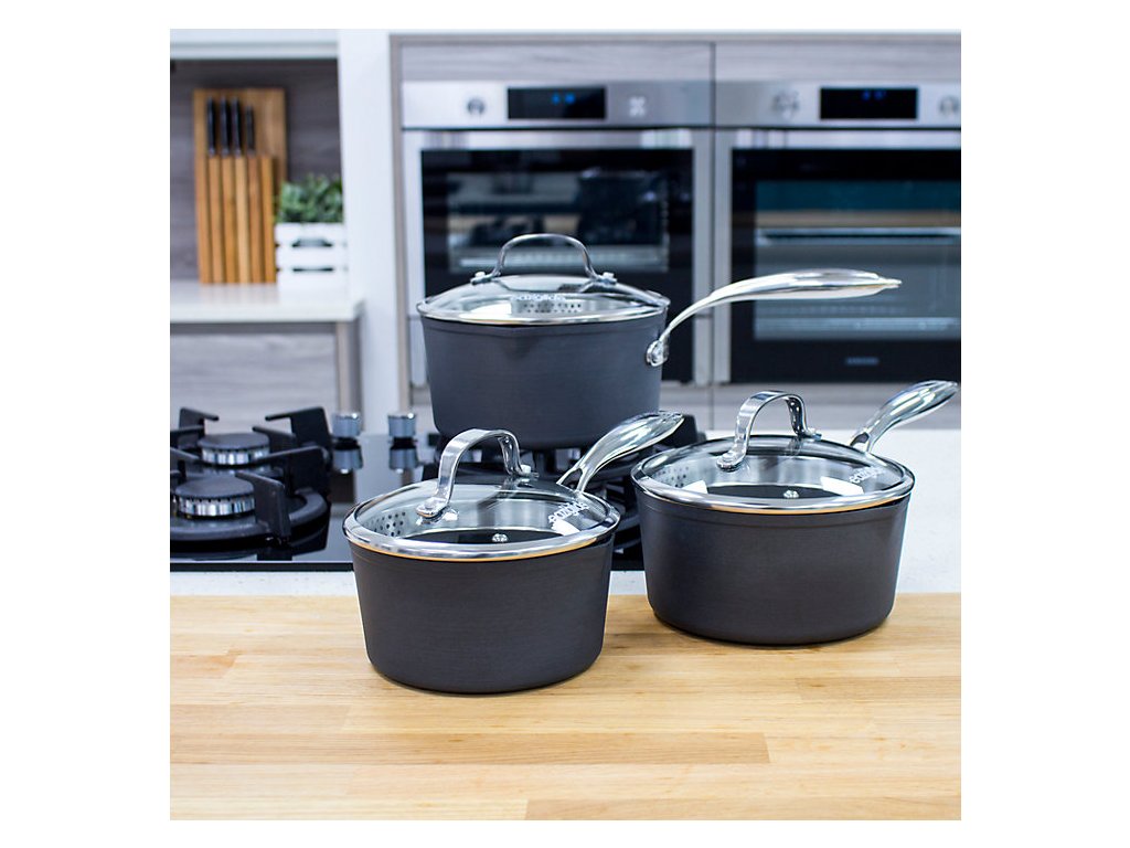 Kolekce Neverstick3 je pro intenzivnější odolnost vyrobena z anodizovaného leteckého hliníku. Jedná se tak o nejdokonalejší kolekci nepřilnavého nádobí značky Eaziglide.