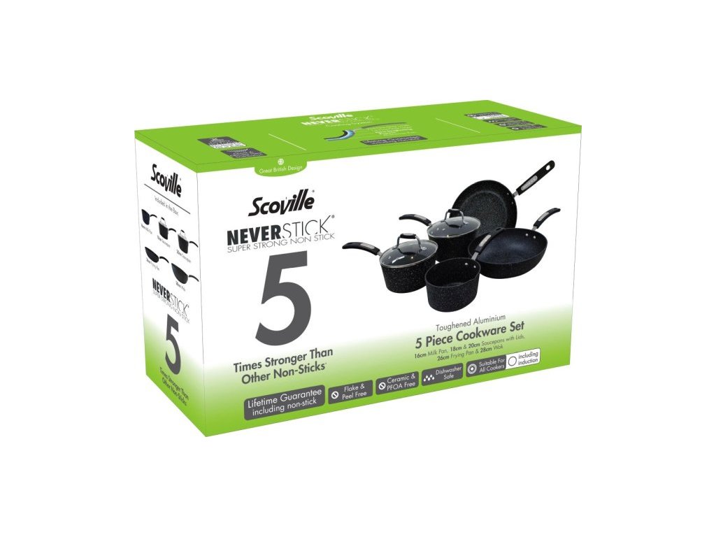 Základní sada nádobí Scoville Neverstick1 se skládá z pěti druhů nádobí, které perfektně poslouží při každodenním vaření.