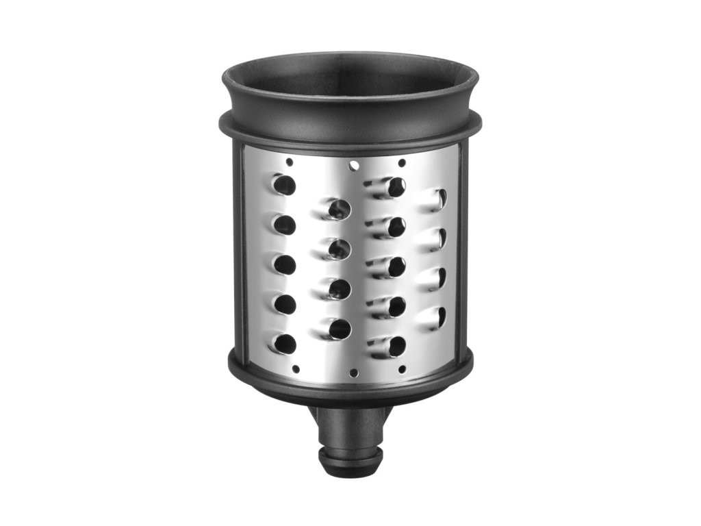 Buben na střední krouhání (4 mm). Je skvělý ke krouhání sýra, tvrdší zeleniny, jako je mrkev, až po jemnější konzistenci Vyrobeno z nerezové oceli. Lze mýt v myčce