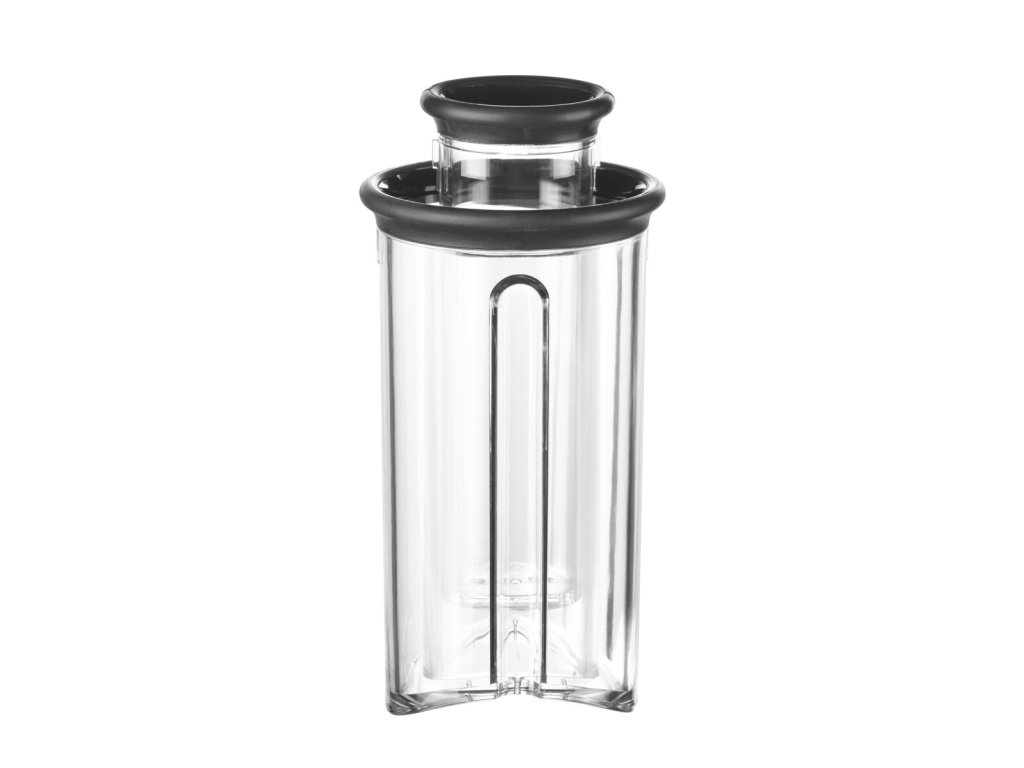 Přítlačný nástavec 2 v 1. Dokonale krájí ovoce a zeleninu jak velkého, tak malého průměru – od okurek po celer. Otvor velkého přítlačného nástavce má průměr cca 6 cm a otvor malého přítlačného nástavce má v průměru cca 3,5 cm. Tělo kráječe/krouhače na přípravu čerstvých potravin. Vyrobeno z plastu s kovovou hnací hřídelí. Není vhodné do myčky na nádobí, lze mýt ručně