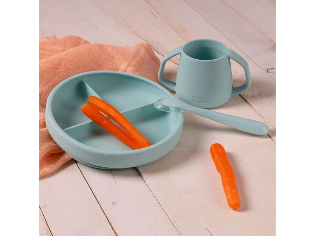 Naše dětské nádobí bylo vyvinuto speciálně pro malé ruce, aby pomohlo dětem v začátcích prvních příkrmů. Je odolné proti rozbití a vybavené protiskluzovou základnou nebo přísavnými body, které zabraňují převrhnutí nebo vysypání. Žádný talířek ani hrneček na pití se tedy nerozbije!