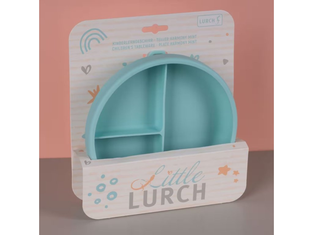 Talíř Little Lurch vyrobený ze 100% prvotřídního platinového silikonu se třemi praktickými přihrádkami, do kterých můžete vložit odděleně různé suroviny. Je vybaven přísavnou základnou, která zajišťuje stabilitu talíře a minimalizuje rozsypání potravin. Lehce zahnutý okraj usnadňuje nabírání. Praktické poutko na zavěšení umožňuje talíř Little Lurch po umytí zavěsit.