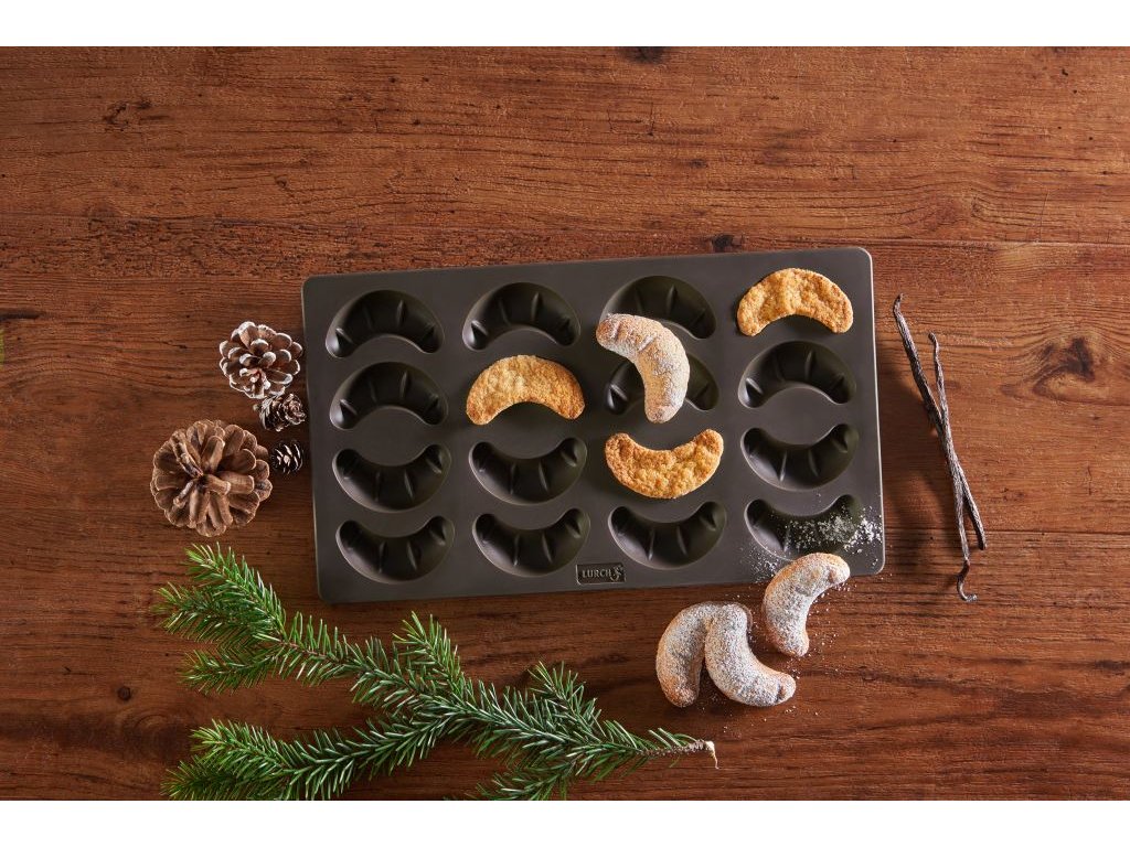 S formou na rohlíčky Lurch vytvoříte dokonalé klasické cukroví. Formu jednoduše naplníte oblíbeným těstem a po upečení vznikne 16 rovnoměrných kousků. Rohlíčky z formy lze snadno vyjmout díky nepřilnavému povrchu. Na závěr už jen stačí rohlíčky obalit v cukru a máte hotovo. Vanilkové rohlíčky krásně doplní talířek s dalším cukrovím a budou skvělou pochoutkou při chvíli u čaje či kávy.