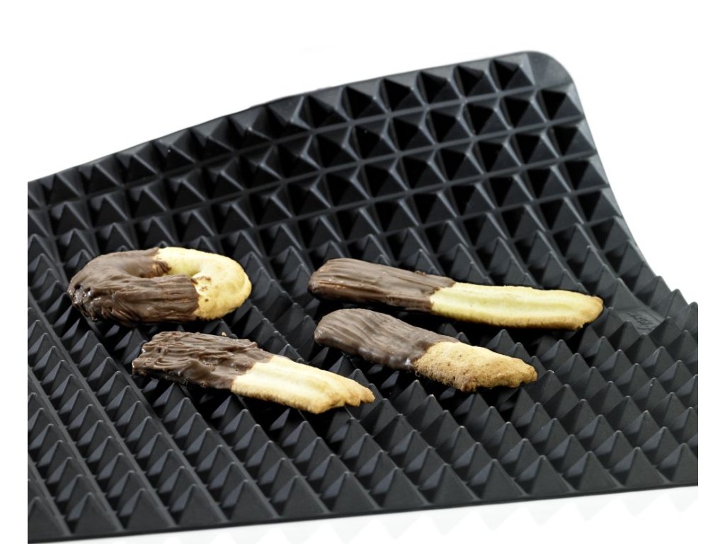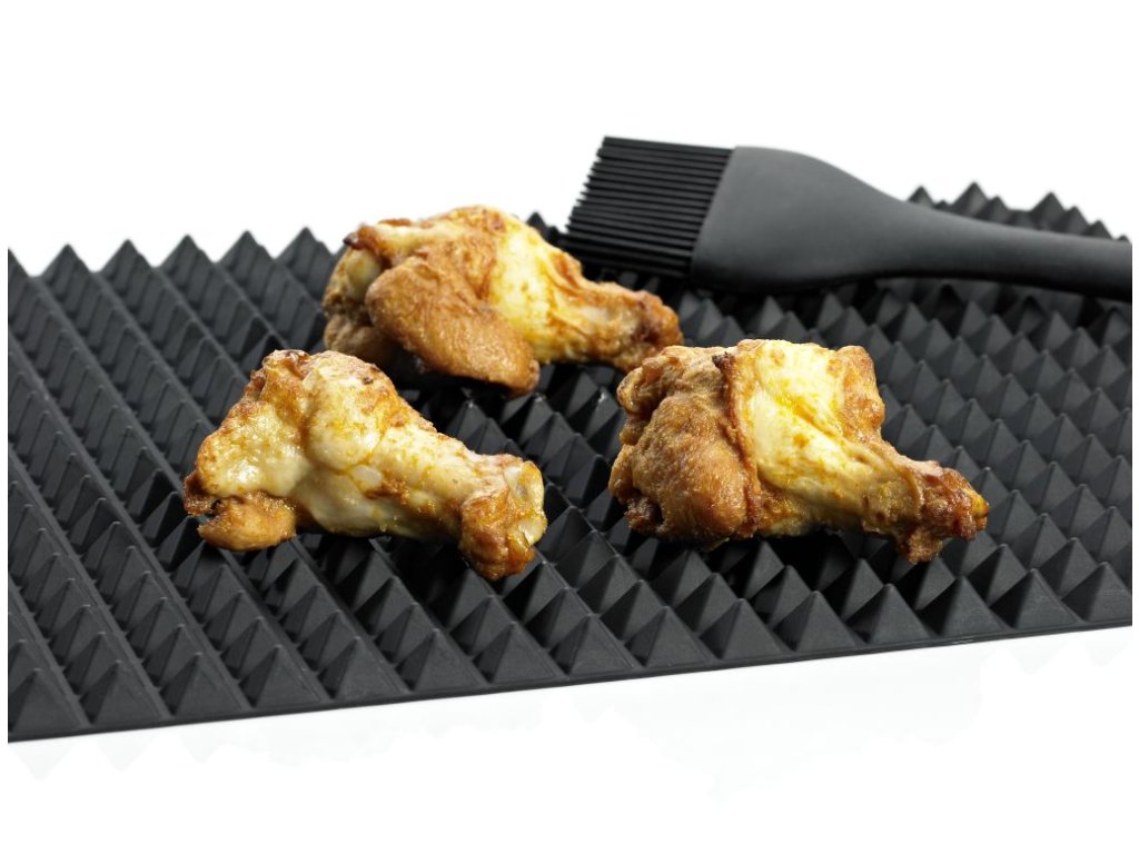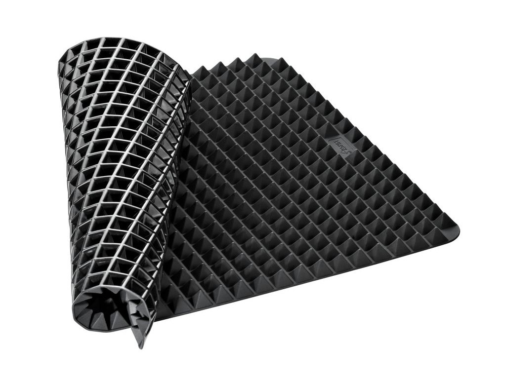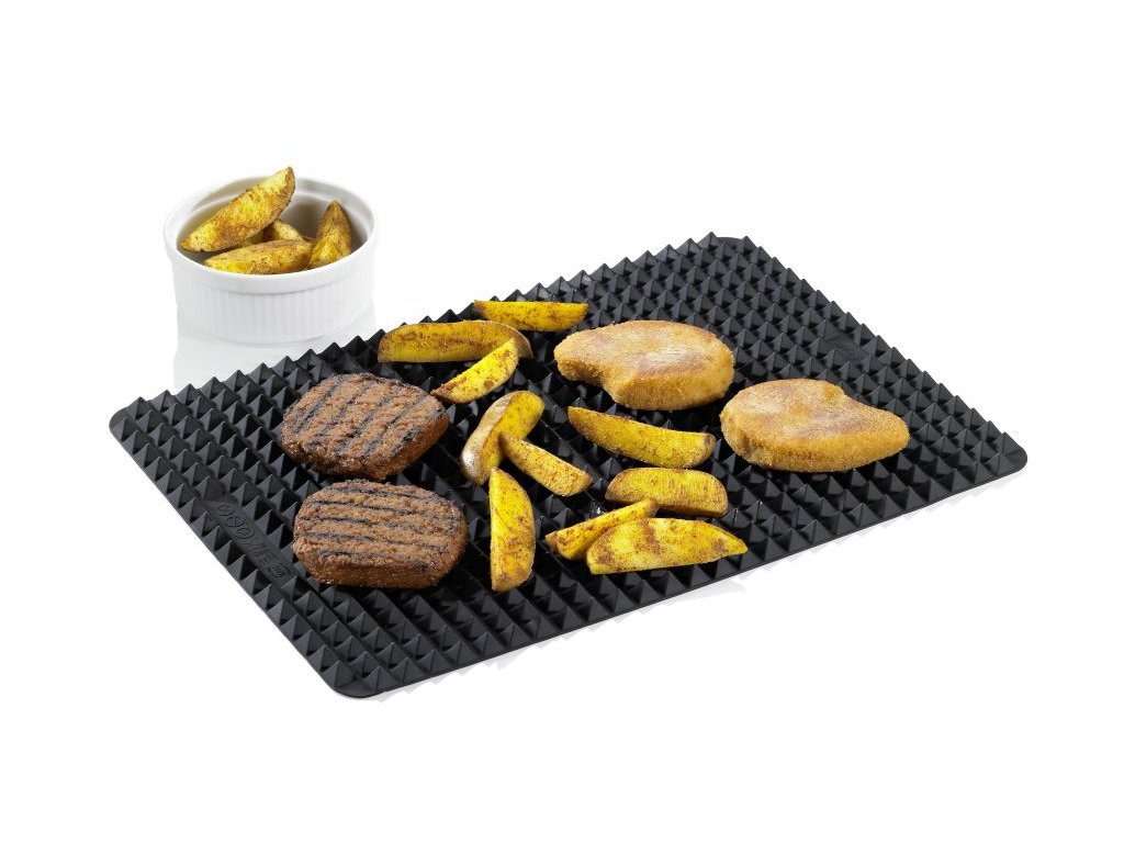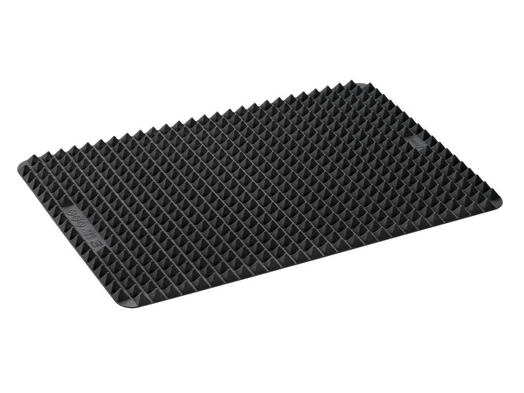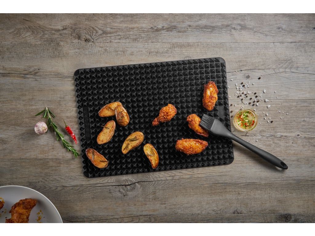 Zdravého pečení dosáhnete díky žáruvzdorné platinové silikonové podložce, která usnadňuje odtékání přebytečného tuku. Vychutnejte si maso, ryby a zeleninu v naprosté dokonalosti. Pyramidová drážka této podložky zajistí, že přebytečný tuk steče už během pečení a zároveň neznečistí vaši troubu. Podložka se snadno udržuje a zbavuje nečistot díky nepřilnavému povrchu. Mýt ji můžete v myčce nádobí nebo pod tekoucí vodou. Podložku využijete i při servírování pokrmů pod horké hrnce.