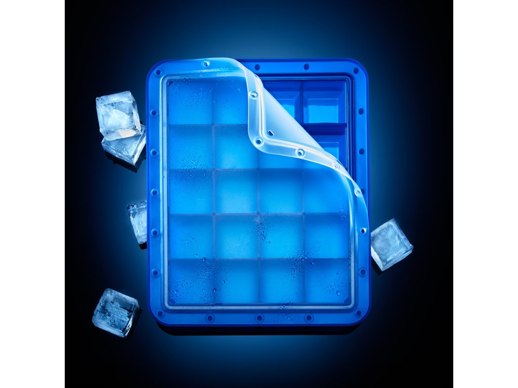 - Pružný a zároveň pevný materiál zaručuje rovnoměrně tvarované kostky ledu, které se z formy snadno vyjímají.