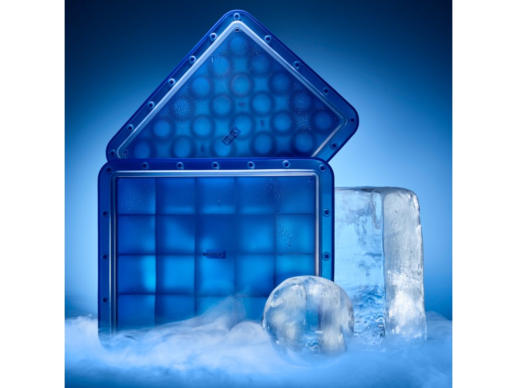 - S průhledným víkem pro snadnější přenos. Víko zamezí úniku vody do mrazničky.