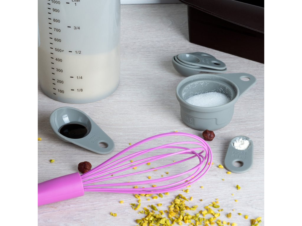 Odměrky vyrobené ze 100% platinového silikonu jsou vhodné pro ohřívání v pečící troubě, mikrovlnné troubě nebo vodní lázni.