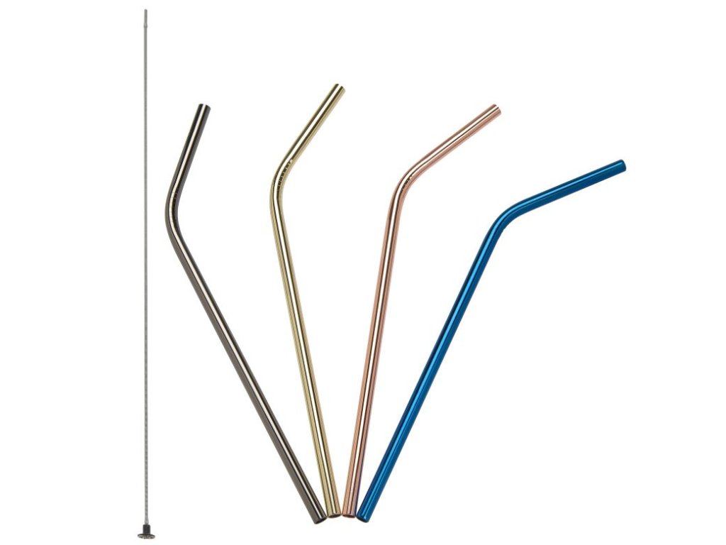 Lurch - Trendy nerezová zahnutá brčka 00240992 -21,5 cm barevná (4 ks+ kartáček)