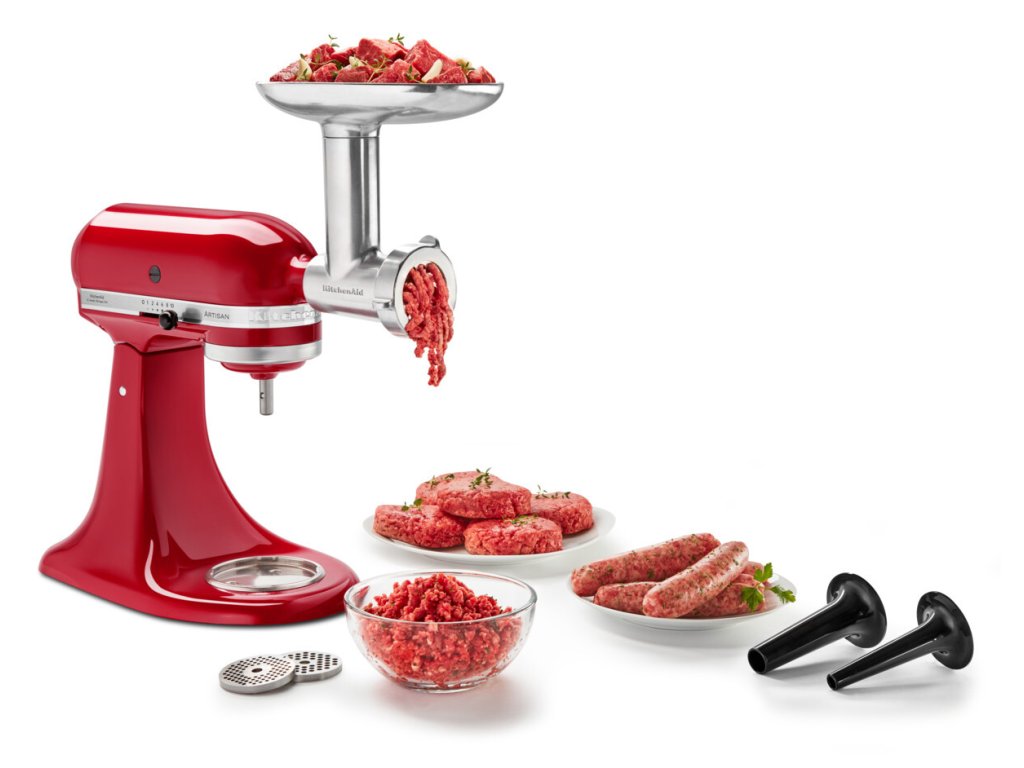 Kovový mlýnek na potraviny. Kovový mlýnek na potraviny KitchenAid dokáže snadno a rychle zpracovat i ty nejnáročnější suroviny.