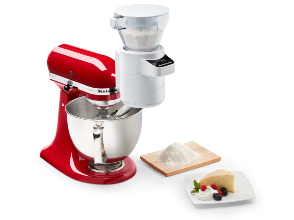 Příslušenství v podobě nástavce se sítkem a váhou je všestranný nástroj pro pečení, který umí automaticky dávkovat a vážit. Snadno dosáhnete konzistentních výsledků díky postupnému vážení a dávkování ingrediencí do mísy. Přesné odměření a správné prosetí suroviny jsou první kroky k získání homogenně promíchaných a vysoce kvalitních pečených pokrmů*. Zkracuje dobu přípravy a čištění, usnadňuje přípravu lahodných a kyprých pokrmů při každém pečení.