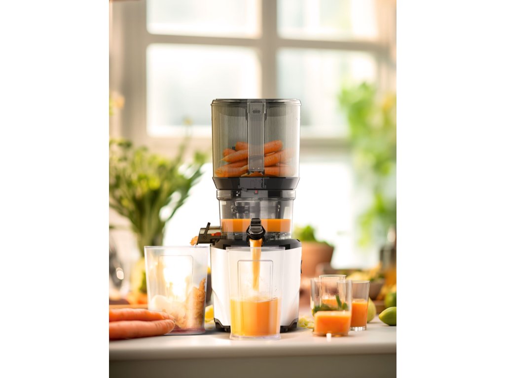 - více šťávy, méně dužiny: očekávejte až o 35 % více šťávy a méně dužiny než u jiných odšťavňovačů