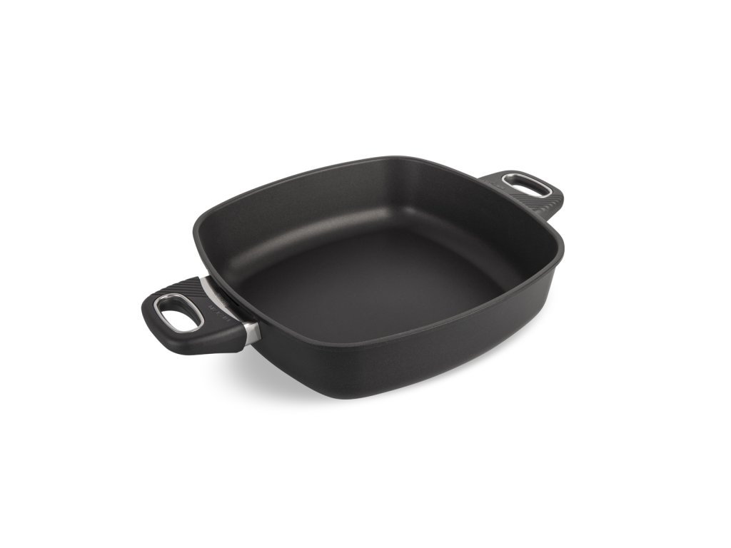 Hranatá pánev má dvě praktická držadla pro snadné přenášení a manipulaci.