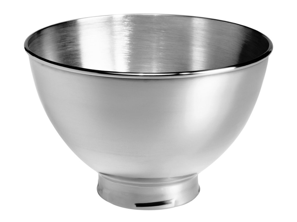 Součástí je rovněž nerezová mísa o objemu 4,83 litru (K5THSBP) a to pro mixování až do hmotnosti 1,2 kg mouky (cca 2,25 kg těsta), dále balení obsahuje mimo jiné i extra 3l nerezovou mísu ( KB3SS) a plochý šlehač se stěrkou (5KFE5T).