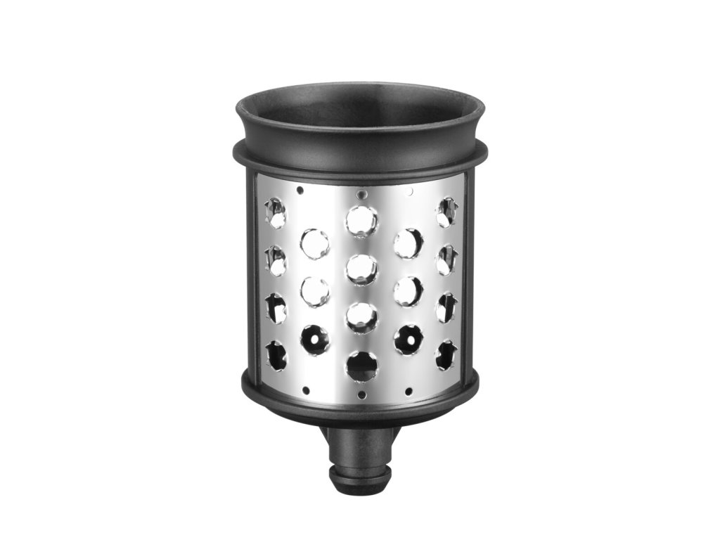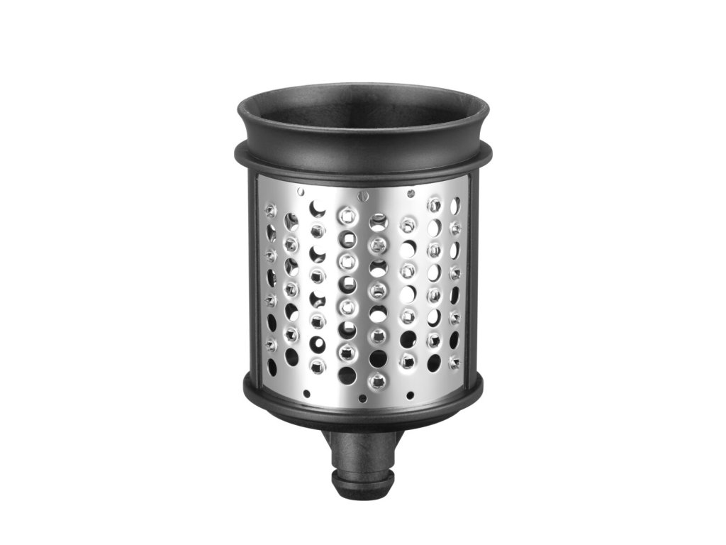 Buben na jemné strouhání. Pro velmi jemné strouhání tvrdších surovin, např. tvrdého sýra. Rychle a efektivně krouhá mrkev na mrkvový koláč a zelí na salát coleslaw.