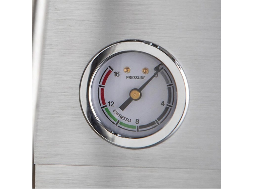 Voda je v přístroji ohřívána trojitým termoblokem, takže se dostane na správnou teplotu během pár minut od zapnutí. Vaše pravé italské epresso je připraveno pod ideálním tlakem 15 barů,manometr viditelně umístěný v přístroji umožňuje kontrolu přípravy každého shotu a profesionální parní nerezová tryska je vždy připravena vytvořit dokonalou mléčnou pěnu pro vaše cappuccino nebo jiný mléčný nápoj. Napěňovací parní trysku lze vyjmout a vyčistit.