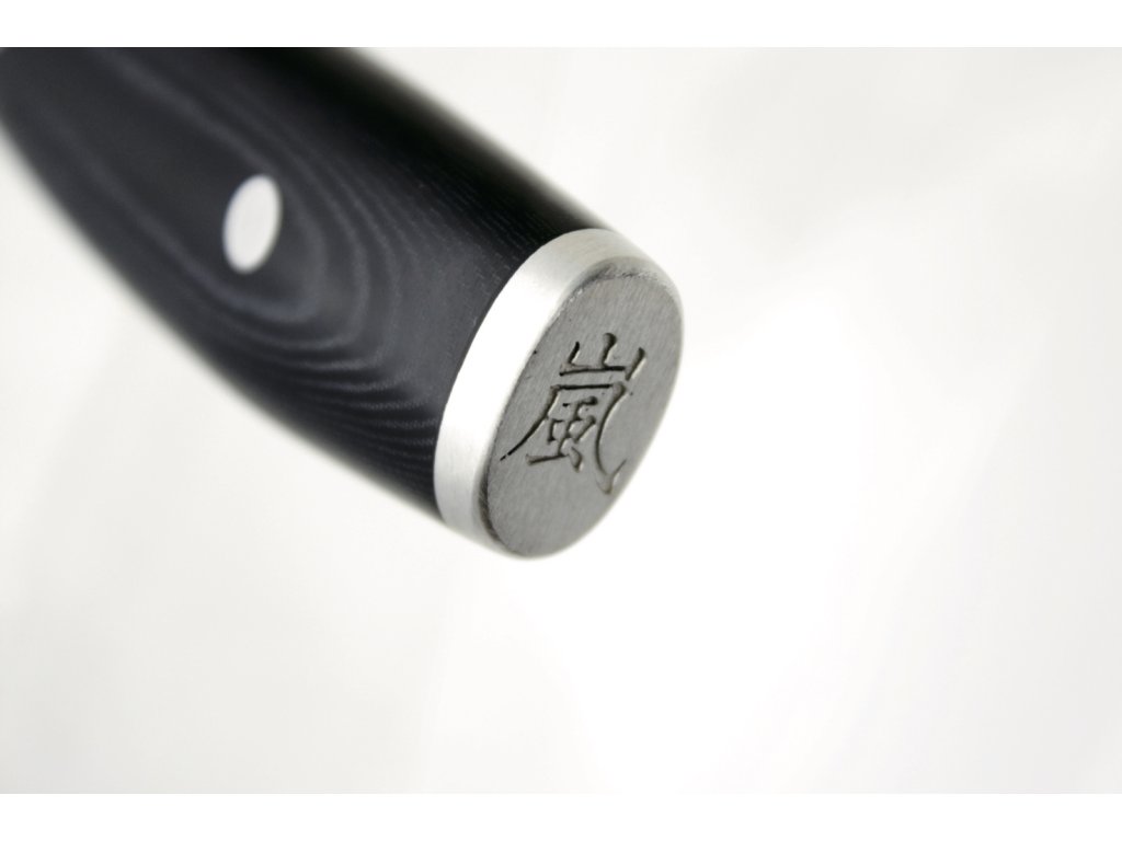 Čepel se skládá ze 69 vrstev damascénské oceli s enormně odolným jádrem z nerez oceli VG 10 o tvrdosti HRC 60-61. Čepel je ozdobena ručně tepaným logem.