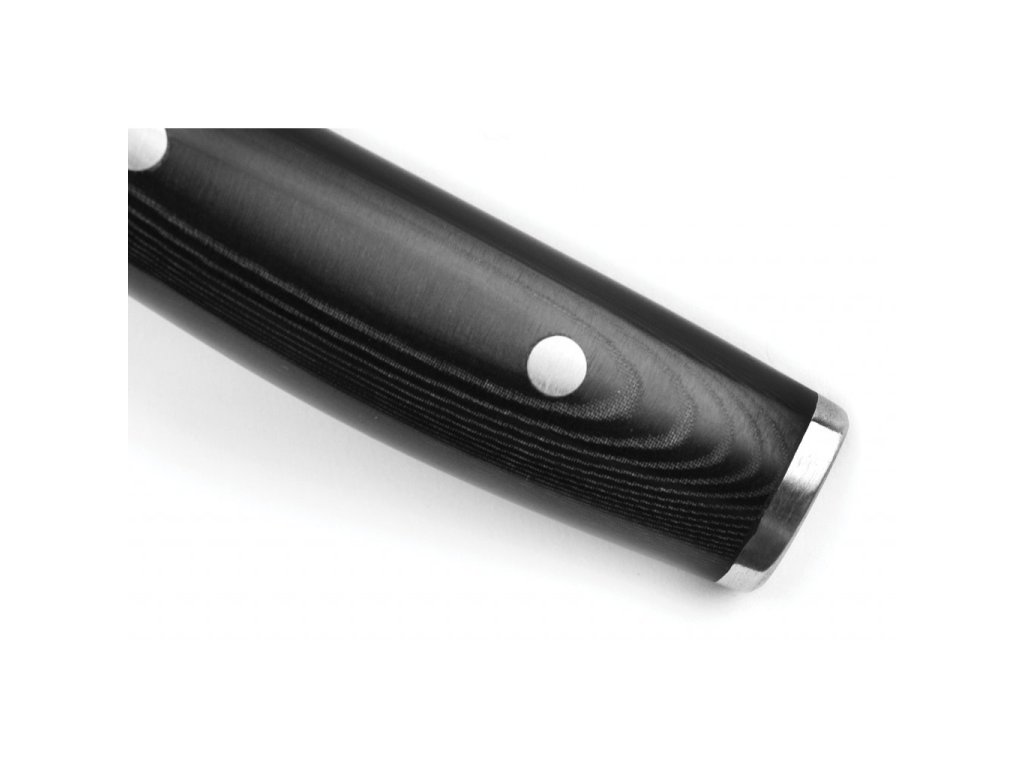 Čepel se skládá ze 69 vrstev damascénské oceli s enormně odolným jádrem z nerez oceli VG 10 o tvrdosti HRC 60-61. Čepel je ozdobena ručně tepaným logem.
